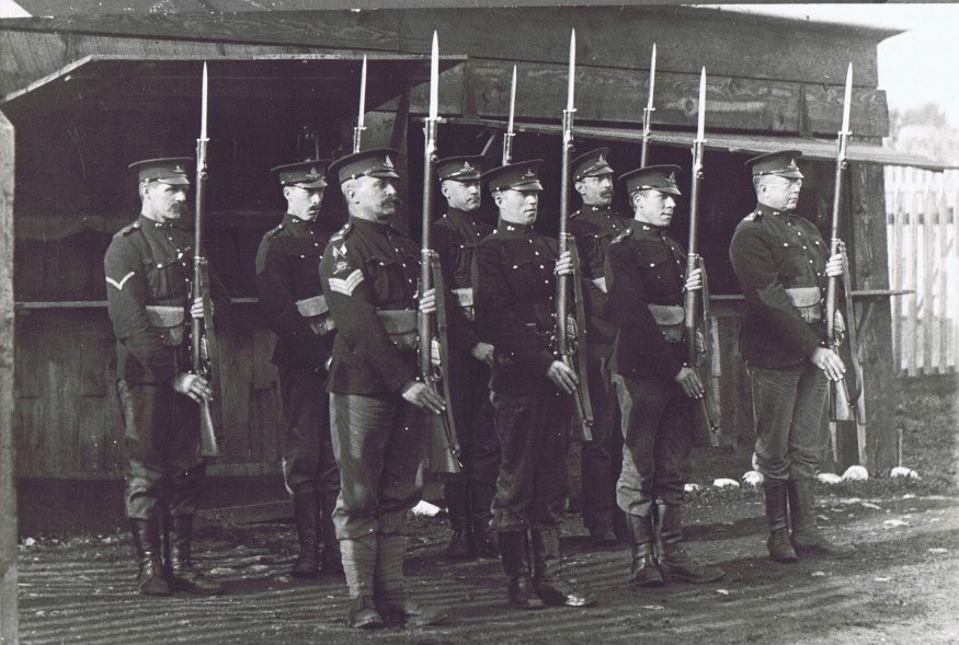 The Quarter Guard presents arms while on duty at Macaulay Point. Courtesy of Craig Cotter at the Museum of the 5th (BC) Regiment Royal Canadian Artillery.